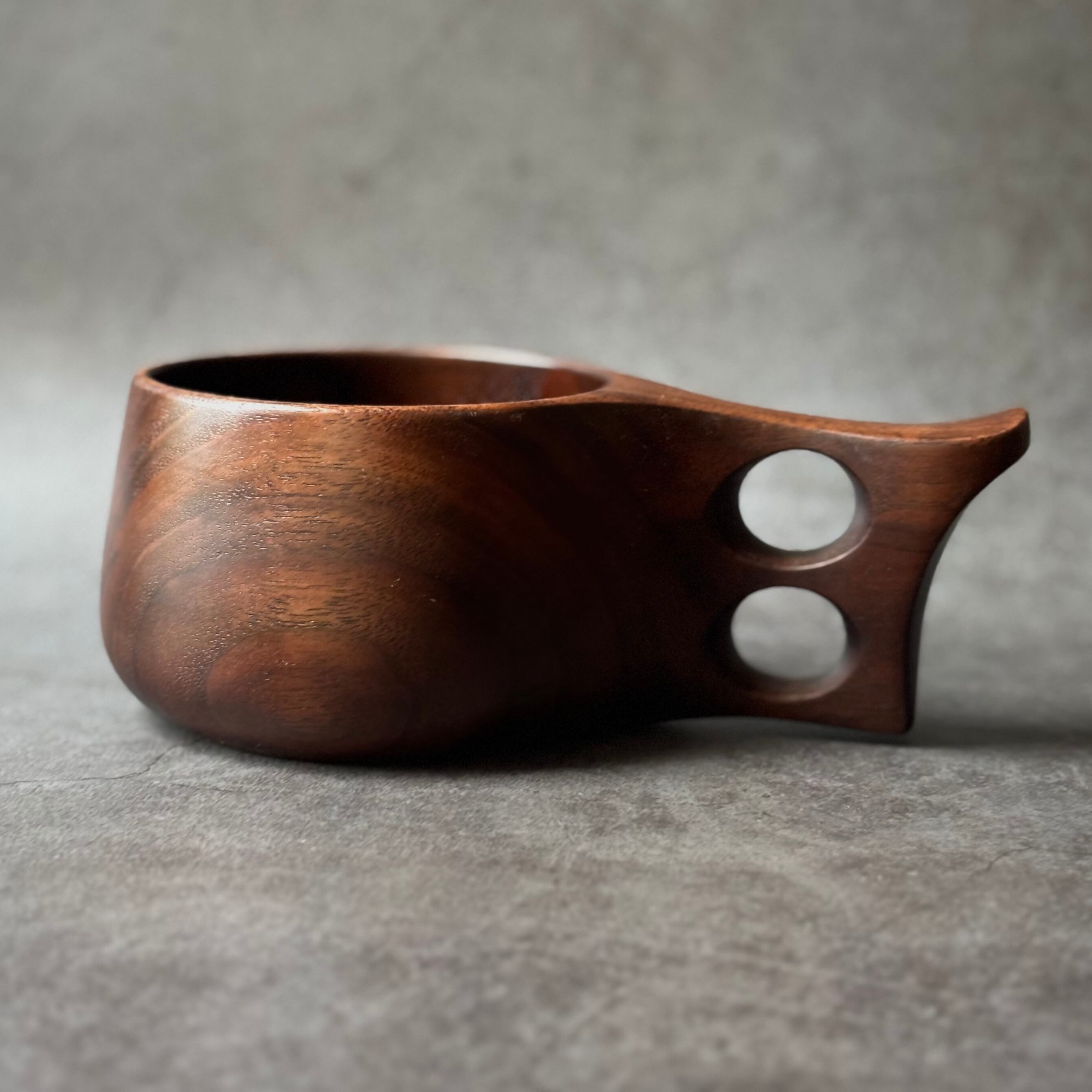 ウォルナットの木から削り出したカップです。