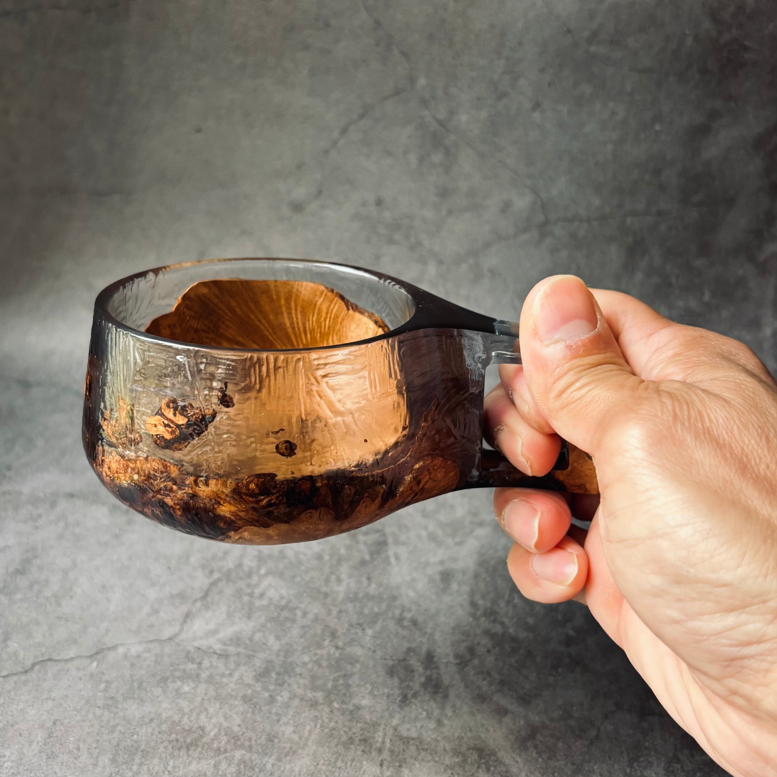Note: While the cups have been tested with boiling water after completion, please avoid directly pouring boiling liquids to prevent damage to the wooden surface caused by sudden temperature
